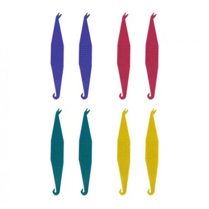 Один кінець має форму гачка для захоплення та натягування еластика, інший — вильчасту форму. Рельєфна ручка проти ковзання пальців