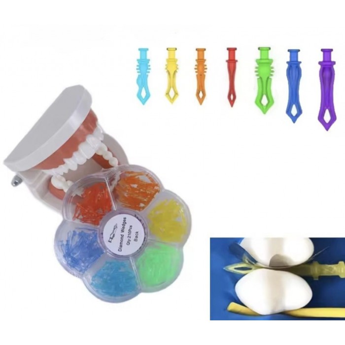 Професійний набір матричних клинів, призначений для фіксації матричних стрічок під час реставрації контактних поверхонь зубів. Використовується при пломбуванні для щільного прилягання матриці до пришийкової ділянки зуба, запобігання нависанню пломбувального матеріалу та формування правильного контактного пункту.